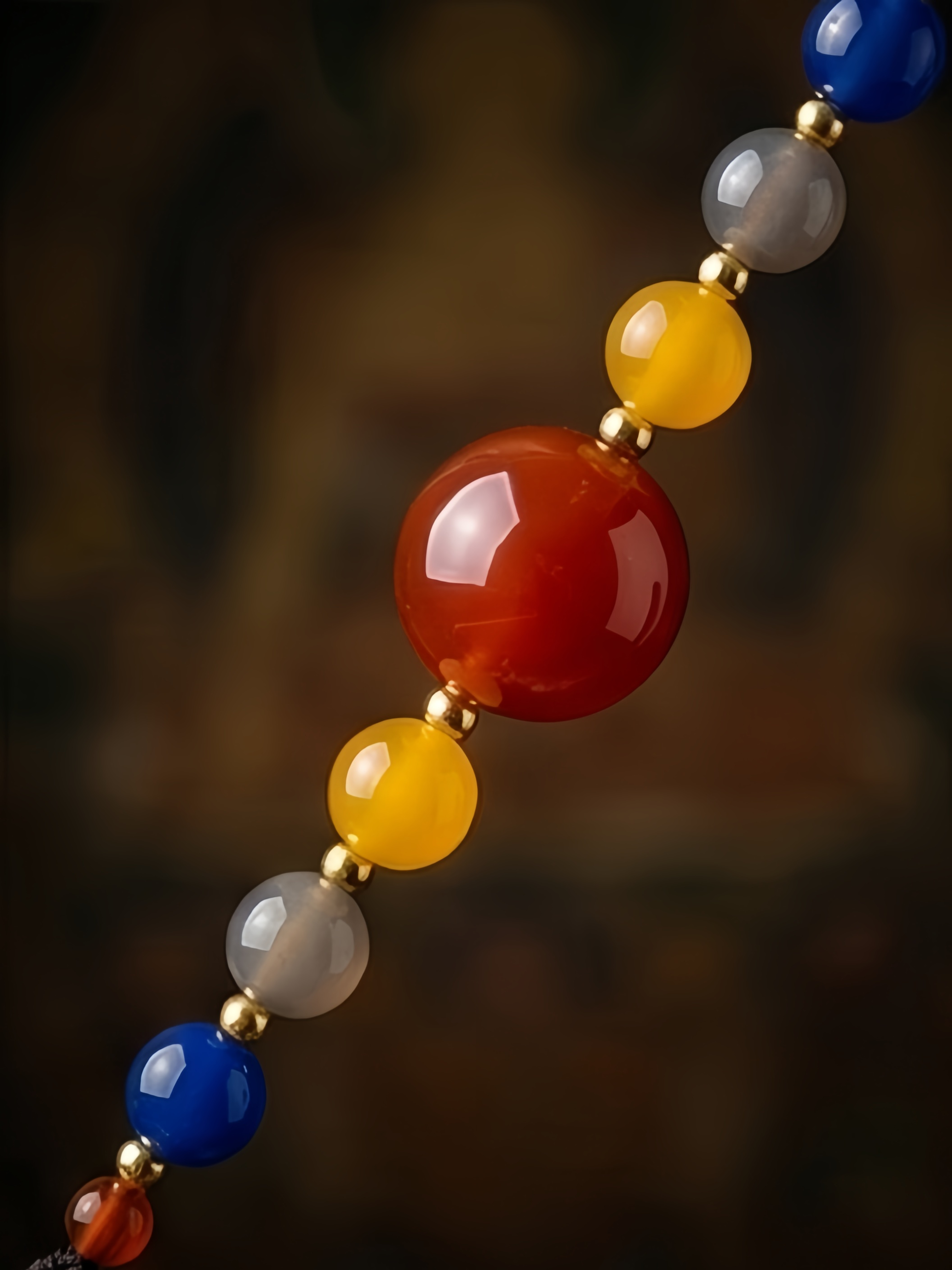 Every stone is a solidified prayer. We have selected three powerful gemstones that correspond to the earth, the sun, and the sky, creating a circle of energetic balance for the wearer.