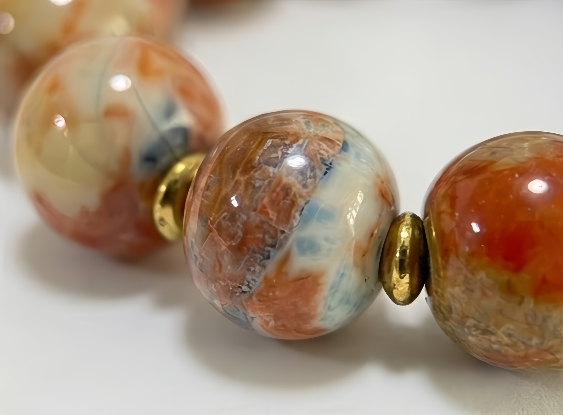 To hold this bracelet is to hold the geological memory of the Himalayas. The central stones are not merely agate; they are fossilized time. Sourced from the austere altitudes where the air is thin and the silence is absolute, these weathered agates bear the "skin" of centuries—a chaotic, organic patina that defies the sterility of modern manufacturing. This weathering is not damage; it is a chronicle. It speaks of the wind, the grit, and the slow, grinding passage of eons. These stones possess a profound gravitas, a physical weight that feels less like jewelry and more like a relic recovered from a forgotten temple.